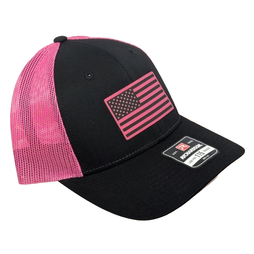 American Flag Pink Leatherette Hat - Low Profile Trucker Snapback