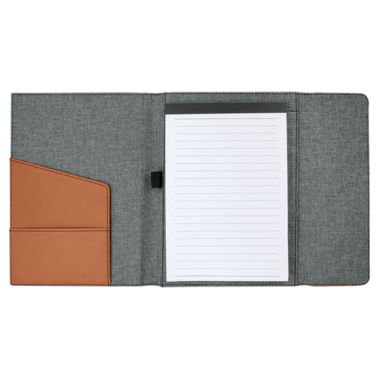 Personalized Leatherette Portfolio - 7"x9" Heather Gray Canvas & Rawhide