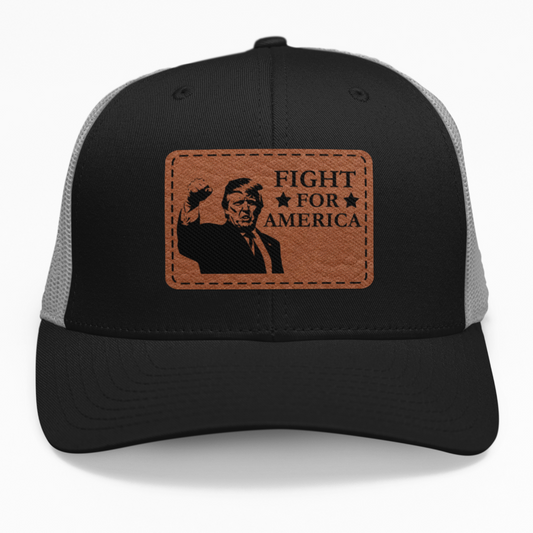 Trump Fight for America Hat - Patriotic Fist Pump - Leatherette