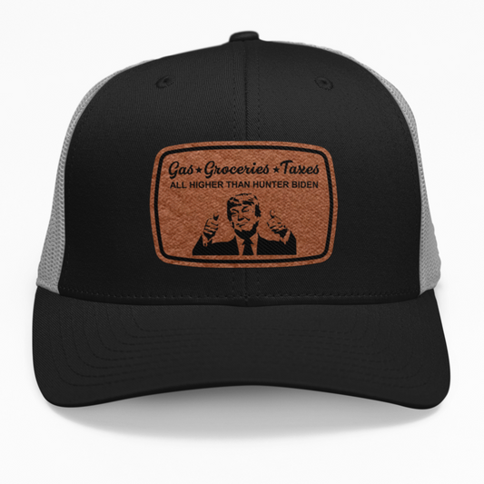 Trump Thumbs Up Hat - High Gas, Groceries, Taxes - Leatherette