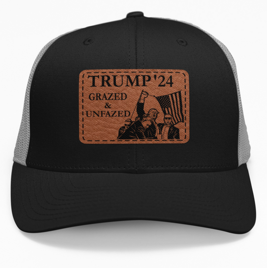 Trump 2024 - Grazed & Unfazed Hat - Leatherette Patch