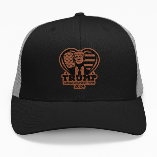Trump 2024 Heart-Shaped American Flag Hat - Leatherette
