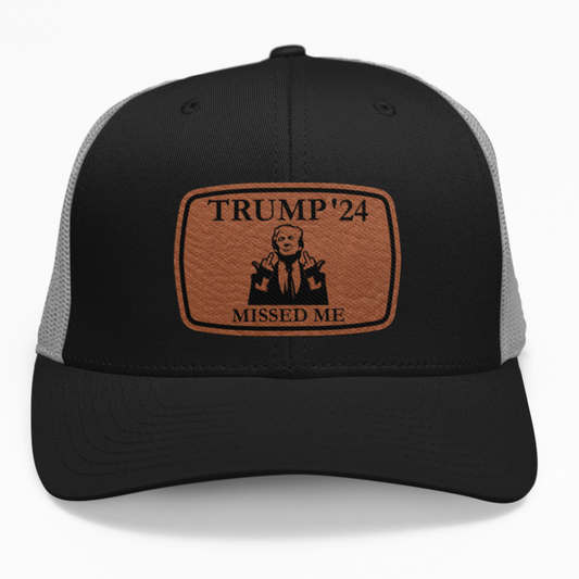Trump 2024 'Missed Me' Middle Finger Hat – Leatherette Patch