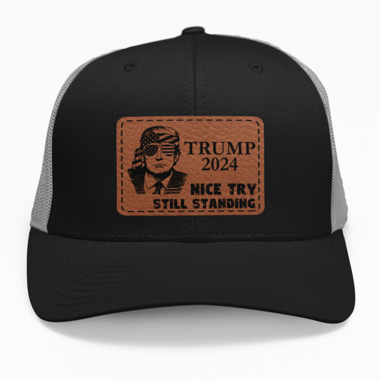 Trump 2024 'Nice Try. Still Standing' Hat – Leatherette Patch