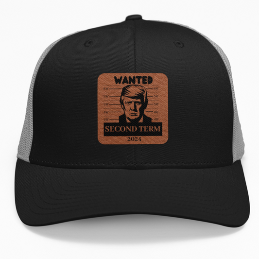 Trump 'Wanted For Second Term' Hat - Funny Mugshot Political Cap- Leatherette